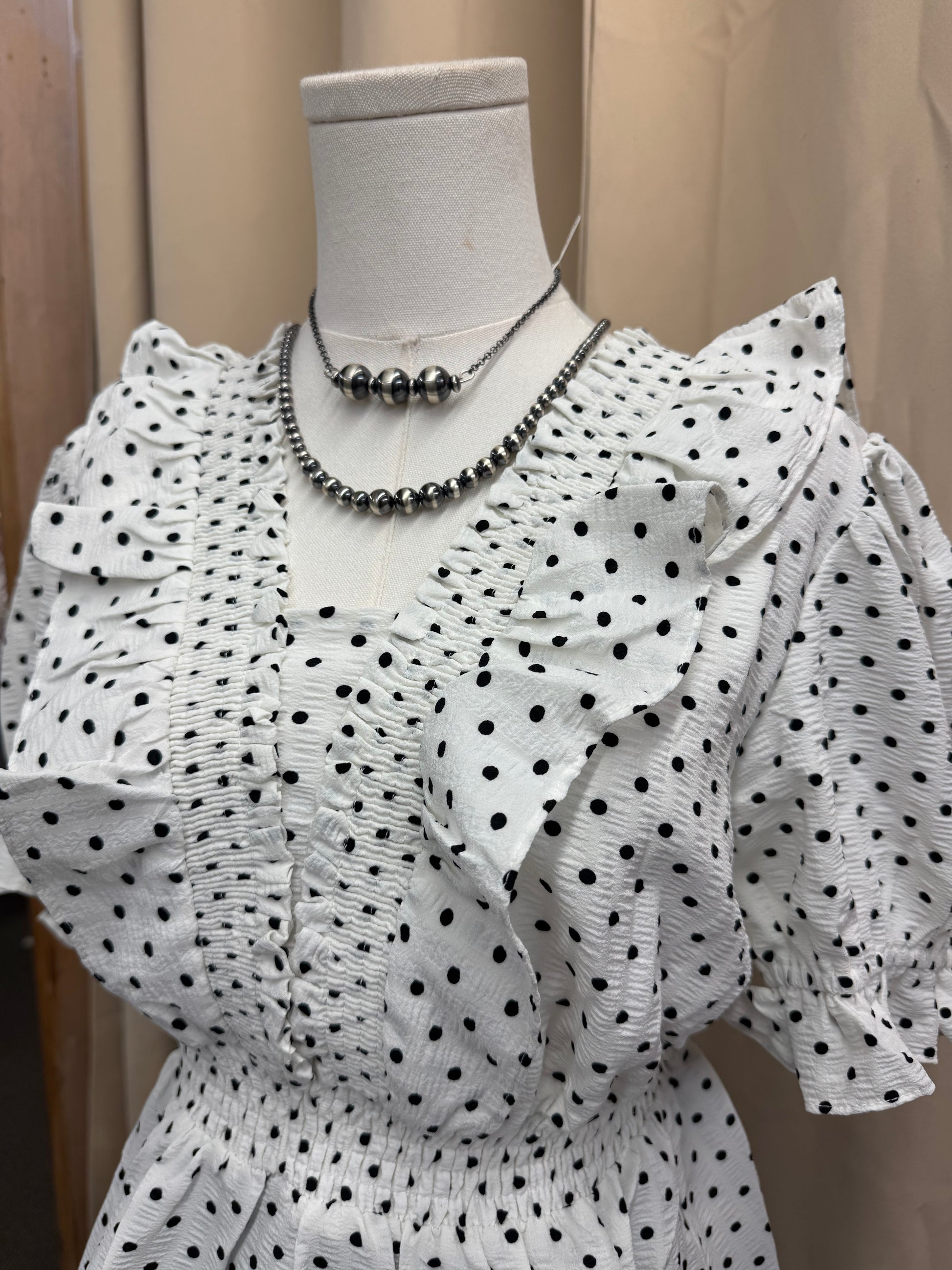 White Dot Ruffle Top
